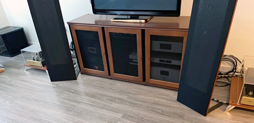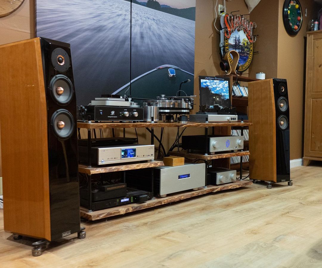 His system has been evolving for quite a few years. As a photographer Lee has many clients and does some product photography for manufacturers stateswide. Lee also had the opportunity to sample the best hi-fi available in the US while reviewing for several audiophile publications. Shelly’s ‘Big Rig’ system now includes VPI Avenger Plus turntable, ModWright phono pre and preamp, Odyssey Kismet power amp feeding Joseph Fudio Perspective2’s speakers. Digital is handled by a Cary Audio DMS-550. Headphones are Dan Clark Audio Ethers driven by a Schiit Audio Mjolnir. Cables are all Audioquest.